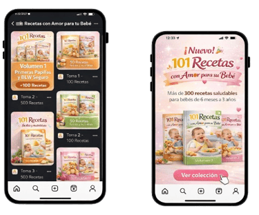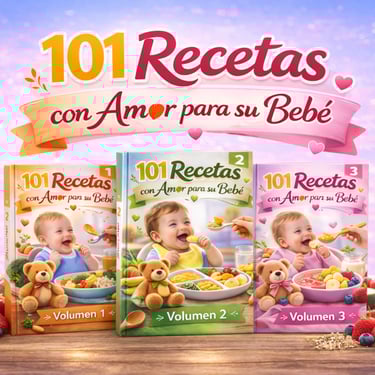Hoy no solo obtienes la colección completa “101 Recetas con Amor para tu Bebé”, sino también 5 guías exclusivas totalmente GRATIS.